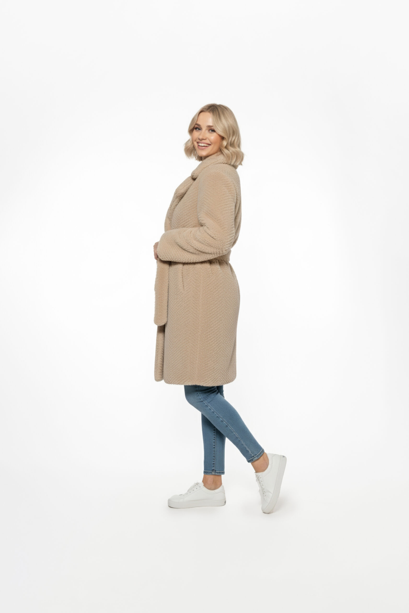 49,90€Abrigo de paño beige, de corte recto, confeccionado con un tejido cálido y suave ideal para los días fríos. Presenta un estilo clásico, incluye cuello de solapa, cierre frontal con botones y bolsillos laterales. El tono beige aporta un aspecto versátil, fácil de combinar con distintos looks.
